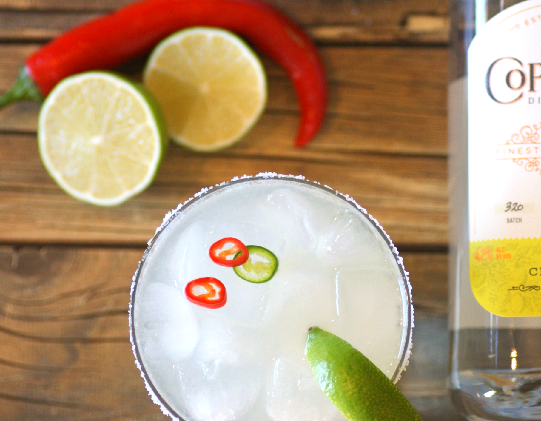 Strain into the prepared glass and add your desired amount of ice to the glass. Garnish with a lime slice and chilli slices.